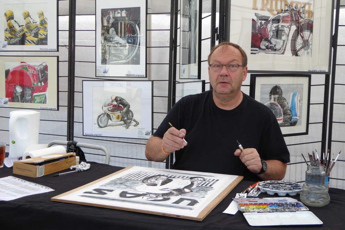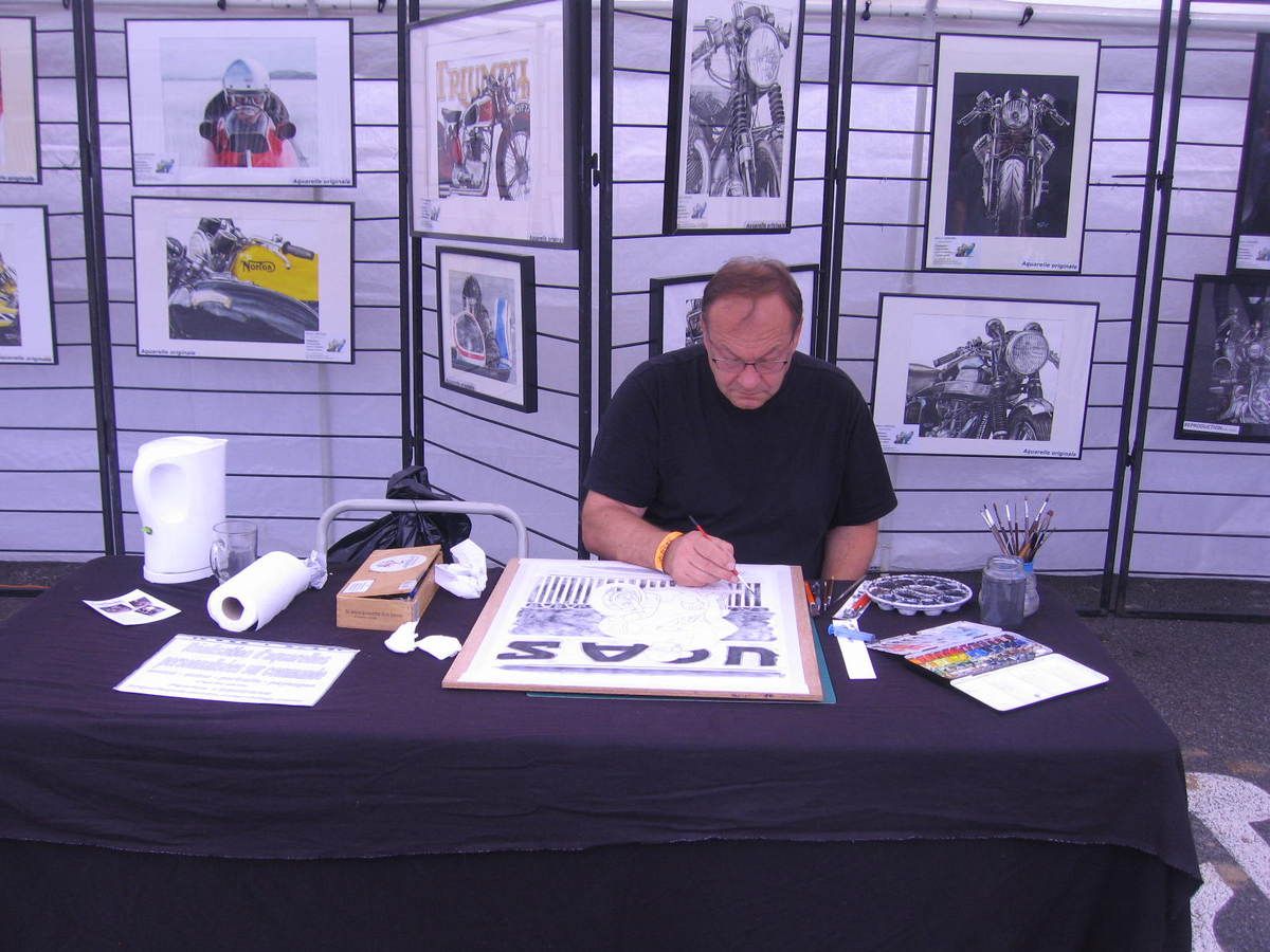Fidèles au poste, l'ami P Lemiègre aquarelliste...Gerald Motos qui exposait de superbes machines de courses et assurait le contrôle technique, le duo, Jean Caillou-Patrick Bédier, était présent avec la réplique (en construction) de la Honda RCB 1000 d’endurance de 1976... Réplica Bike, Machines et moteurs, des boursiers et spécialistes en accessoires moto proposaient leurs produits.