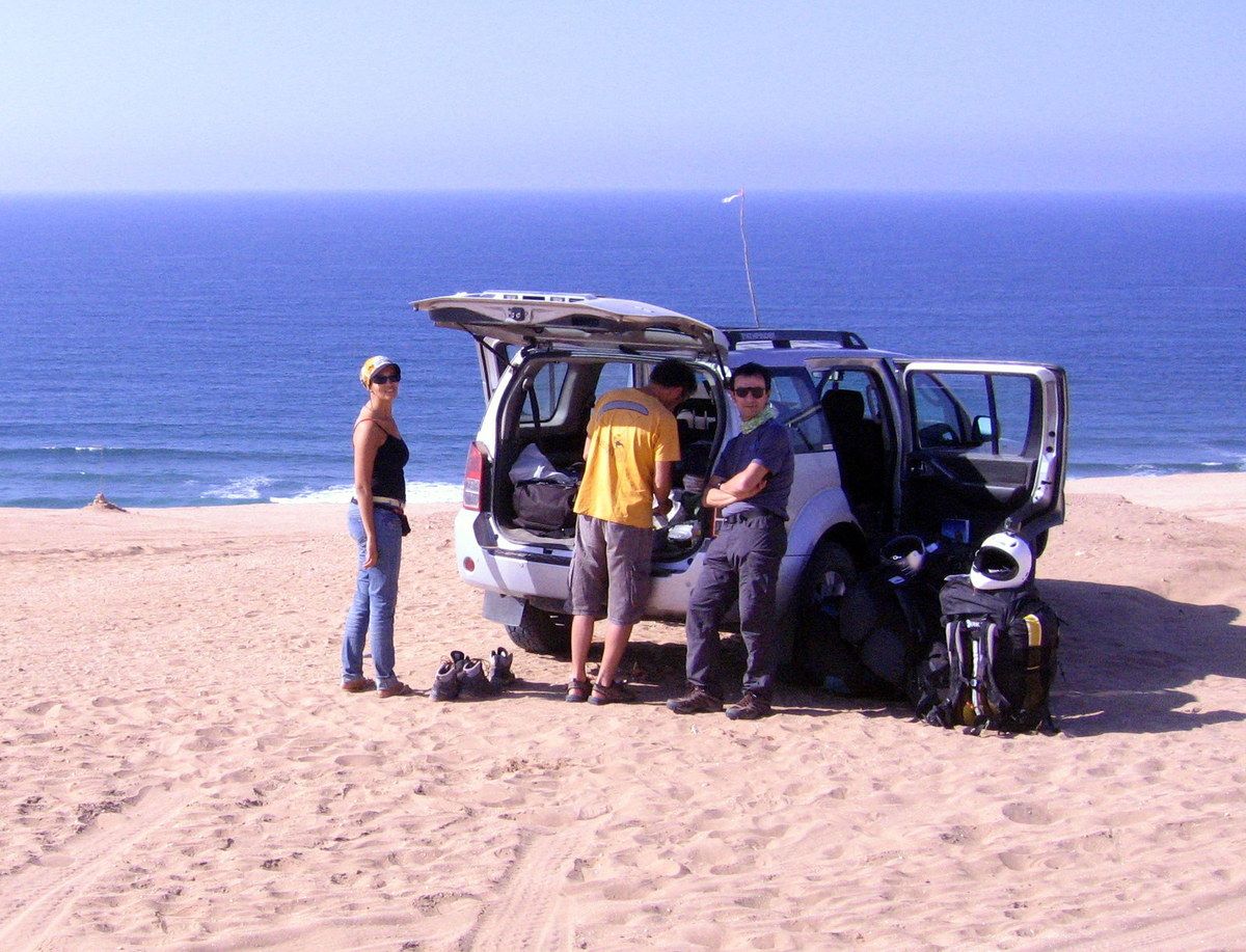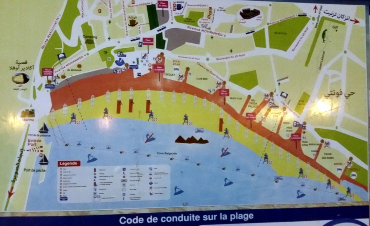 Jeudi 16 retour à Tifnit vent trop faible (malgré nos incantations à Éole) pour voler en falaise, 3h de gonflage (des plus bénéfique) et bain de mer pour Laurent, soirée à Agadir.